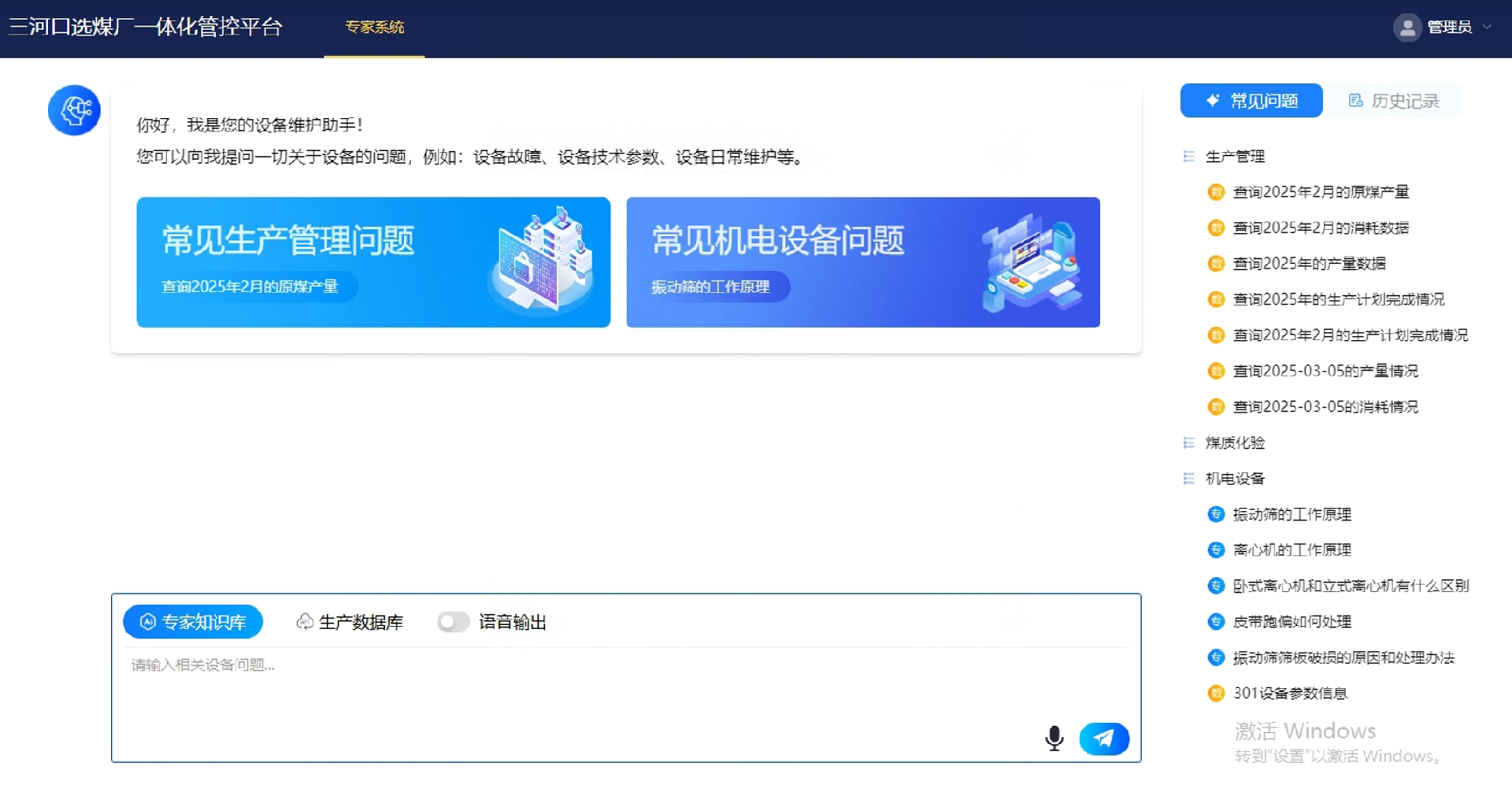 產(chǎn)品簡(jiǎn)介:該平臺基于基礎自動(dòng)化、智能控制、智能檢測等業(yè)務(wù),將選煤生產(chǎn)、運營(yíng)、管理的各子系統集成整合,通過(guò)對生產(chǎn)全過(guò)程關(guān)鍵數據的提取、分析,實(shí)現對產(chǎn)品數質(zhì)量、生產(chǎn)組織、經(jīng)營(yíng)成本等管理信息的智能決策,達到諸如設備智能運維、狀態(tài)智能監測、過(guò)程智能控制、參數智能設定、管理智能精細、決策智能調節等目標,進(jìn)而為選煤廠(chǎng)的安全高效生產(chǎn)保駕護航。行業(yè)率先提出構建行業(yè)垂直領(lǐng)域大模型,基于選煤廠(chǎng)終端生態(tài),通過(guò)文字對話(huà)、語(yǔ)音交互等方式問(wèn)答式檢索專(zhuān)業(yè)知識,統計生產(chǎn)狀態(tài),分析設備問(wèn)題故障,實(shí)現智能化人機交互新模式。