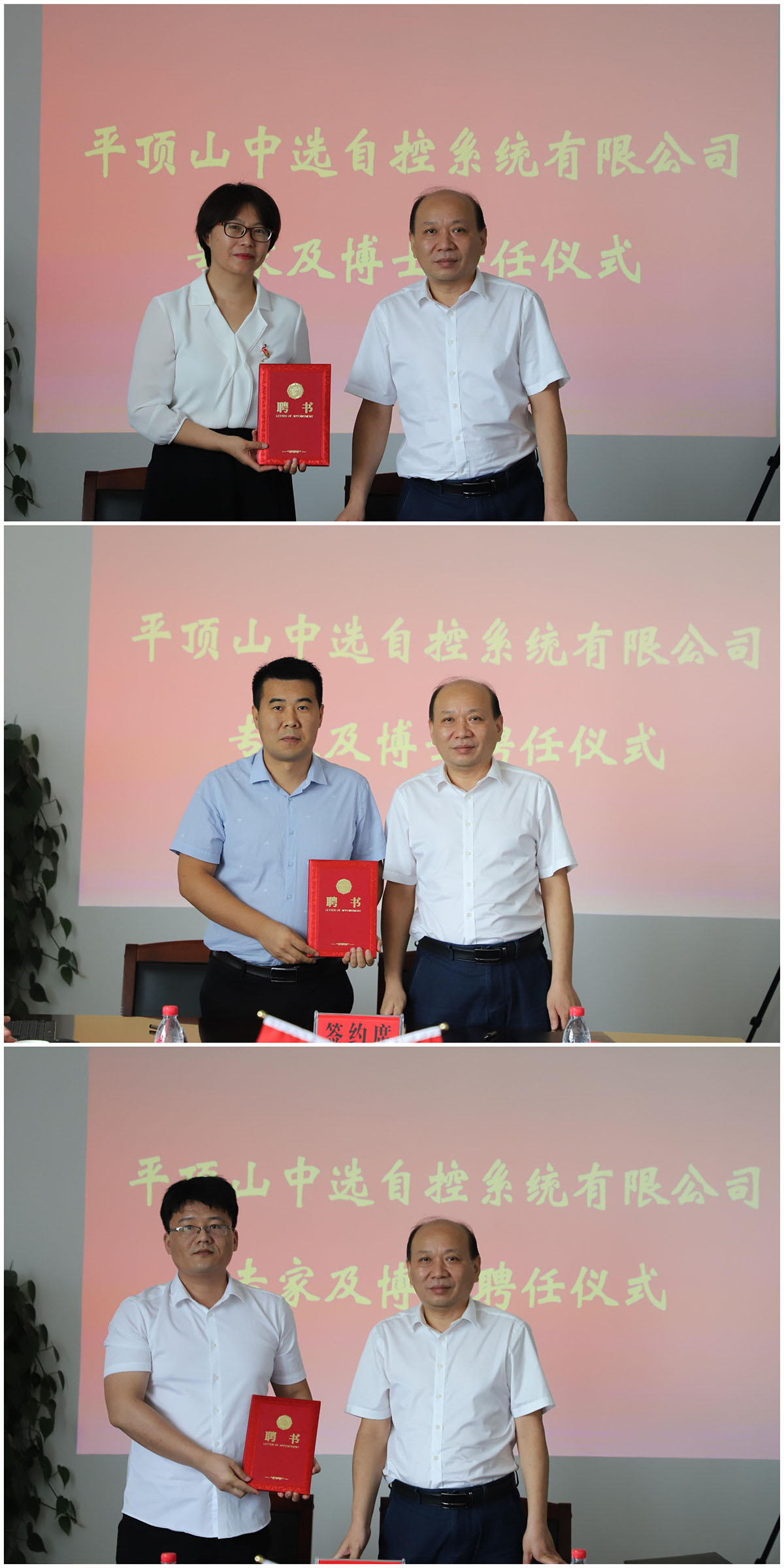 中選自控系統有限公司總經(jīng)理王巍與受聘專(zhuān)家簽署聘任協(xié)議,為董燕飛院長(cháng)、梁成武博士、司文杰博士頒發(fā)聘任證書(shū)。